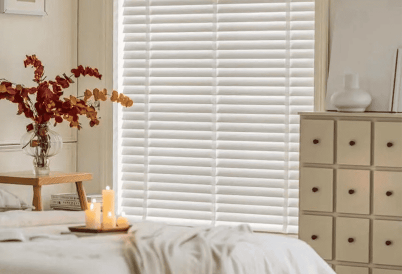 - 優點: 百葉窗能透過葉片角度精準控光,其中仿木材質(PVC)更具備防水、防潮且不易變形的特性,非常適合台灣潮濕的衛浴或廚房環境。